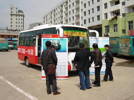 江淮底盘转变营销方式更体现在巡展过程中。例如在巡展现场首次出现了一对一全程服务人员。据了解,在巡展中江淮底盘特别为各终端客户配备了全程陪同讲解的技术人员、服务人员。从产品的技术细节、匹配合理性到整车试乘试驾、维护保养、使用注意事项,都有专业人员进行一一详解,纠正车主一些不良的操作习惯,传授节油以及延长关键零部件使用寿命的技巧,充分体现了底盘厂家为客户着想的细心与贴心。在陕西三原巡展活动中,一位车主坦言道:“今年换车就用江淮底盘的客车,底盘实在,江淮厂家的人更实在!”。在宁夏的彭阳和海原县巡展时,彭阳县世纪公交的倪总和海原利民公交的杨总在参观完巡展产品后还特别针对这种“一对一”的服务模式做出了高度评价,并当即表示愿意与江淮底盘合作。