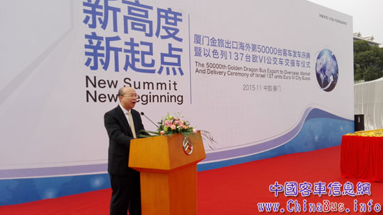 11月30日,厦门金旅第50000辆客车出口海外发车庆典暨以色列137辆欧VI公交车交接车仪式在厦门金旅海沧基地隆重举行。这标志着厦门金旅成为国内大中型客车业为数不多海外出口总量突破5万辆的企业之一,也标志着中国自主品牌客车出口达到新高度,更标志着在“一带一路”战略下,“中国制造”客车再结硕果。