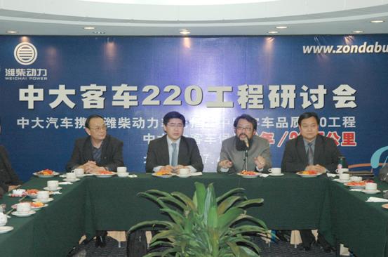 4月18日下午,中大汽车“220工程”研讨会在北京德宝大饭店召开。建设部车辆专家委员会总工程师顾建国,重庆交通大学教授王建,四川运输管理局总工程师苟树基、中国客车信息统计网首席分析师佘振清,中国交通报汽车周刊主编周明,潍柴动力营销公司刘沂部长等数十位国内客车行业专家以及客运企业负责人出席了此次研讨会,并提出了对“220”工程的观点和建议。