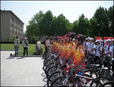2009年5月16日上午15时,由12名来自全国各地大学生组成的大运文化骑行志愿者从北京国家体育馆出发,前往天津南开大学的征途上,开始了大运精神撒播之旅的下一站。