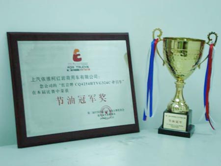 新红岩杰狮牵引车CQ4254HTVG324C在第二届中国国际卡车节油大赛中获得节油冠军奖。