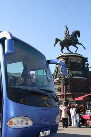 停在圣彼得堡广场上的宇通客车