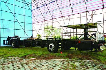 承载这样一个庞然大物的正是桂林大宇客车有限公司设计制造的专用底盘。