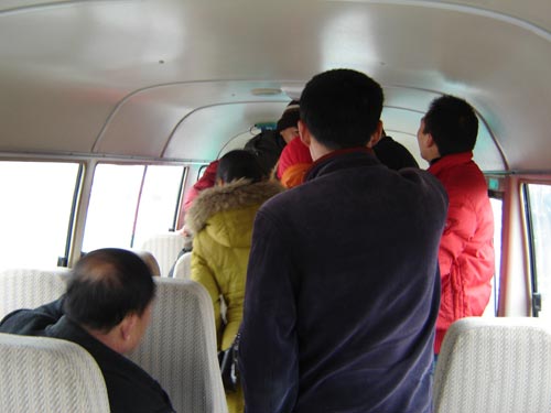 泰安恒旭房房建伟总经理(左一)在肥城客运站停放好巡展样车