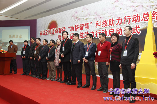 获得全国道路客运海格智慧“科技应用先进企业奖”的企业代表上台领奖