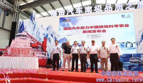2013年7月12日,福田汽车与国家海洋局极地考察办公室正式签约并联合召开新闻发布会,发布会宣布福田汽车正式成为“中国南北极科考战略合作伙伴”,并为中国科考队第30次出征南极提供专用车辆,这标志着福田汽车将成为中国首个造访南极大陆的商用车品牌。同时福田汽车还启动了“极地英雄”招募活动,将评选出一名卡车司机和一名极地梦想家,福田汽车将帮助他们实现南极梦想。