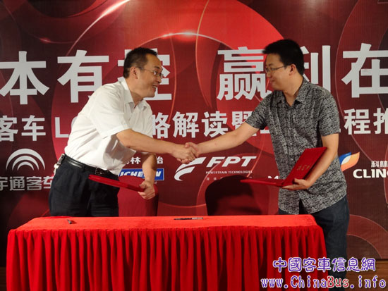宇通的LCC理念获得了与会代表们的普遍认可,重庆市汽车运输(集团)有限责任公司(简称渝运)、南充市公共交通有限责任公司现场与宇通签署了实施LCC工程的合作意向书。渝运公司副总经理张健表示:“渝运多年来对宇通客车情有独钟,宇通车质量可靠,尤其是车身工艺和整车匹配做得非常好,开起来轻松”舒适,谈及对此次宇通的LCC理念,张健表示“宇通LCC通过对道路条件的深入分析,设计匹配最适合的车型,以达到最佳的运营效果,这对我们客运企业来讲无疑是一件好事”。南充公交公司技术设备科张远宏科长则表示,“虽然我们从近两年才开始引用宇通客车,但通过我们前期的运营实践和效果对比,宇通客车不愧是领导品牌,故障率低,售后服务好。此次我们是抱着学习的态度来参会的,我们对宇通的LCC理念很感兴趣,我们也希望能通过和宇通合作实施LCC工程,控制我们的运营成本,改善经营管理”。