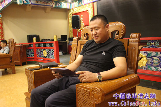 沈阳宏运旅游客运有限公司董事长景雪峰正在阅读宇通T7画册