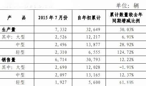 宇通客车公司近日发布最新产销数据快报,7月份销售客车6714辆,同比大增65.8%,环比增长26.1%;其中,大型客车销售2690辆,同比大增64.0%,中型客车销售2097辆,同比增长19.8%,轻型客车销售1927辆,同比大幅增长192.4%。