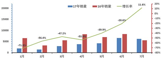 2017年1-7月中国客车总销量走势图