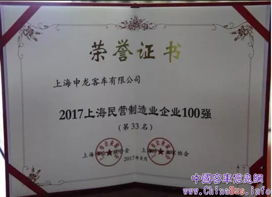 上海企业百强榜由上海市企业联合会、上海市企业家协会和上海市经济团体联合会主办,意在表彰在推动上海经济和社会发展中作出重要贡献的企业。榜单以企业营收作为入围标准,从资产总额、所有者权益、研发费用等指标进行综合测评,体现了企业规模,更彰显了企业的综合实力。获此荣誉是对申龙客车取得各项成果的肯定,同时也是公司发展的重要里程碑。