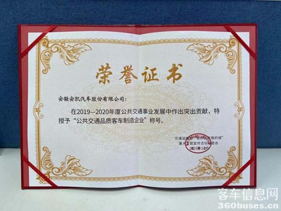 11月,“新能源公交高品质线路”经验交流会,安凯客车荣获