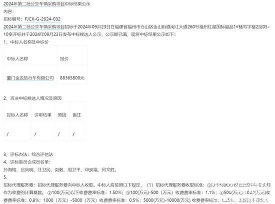 近日,厦门金龙旅行车有限公司成功中标福建省2024年第二批公交车辆采购项目,中标总金额为88365800元。