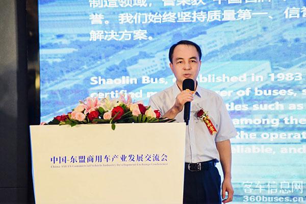 河南少林客车股份有限公司董事长刘毅通过介绍少林客车数智化商用车的解决方案,期待与东盟各国实现在技术、服务、模式上的全方位创新,互利共赢,共同迎接绿色智能交通新时代。