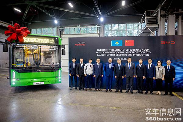 近日,哈萨克斯坦首批比亚迪电动大巴在阿斯塔纳汽车(Astana Motors)商用车生产工厂成功下线。