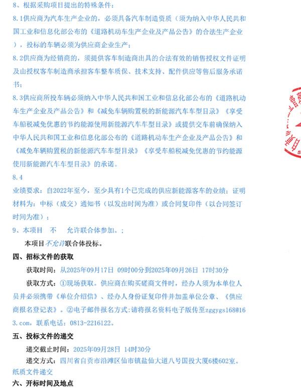 四川省自贡市公交集团有限责任公司关于新能源纯电动公交客车采购项目的延期(补遗02号)公告