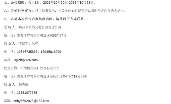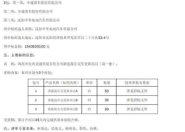 黑龙江省鸡西市公共交通有限责任公司新能源公交车更新项目(第一批)中标候选人公示