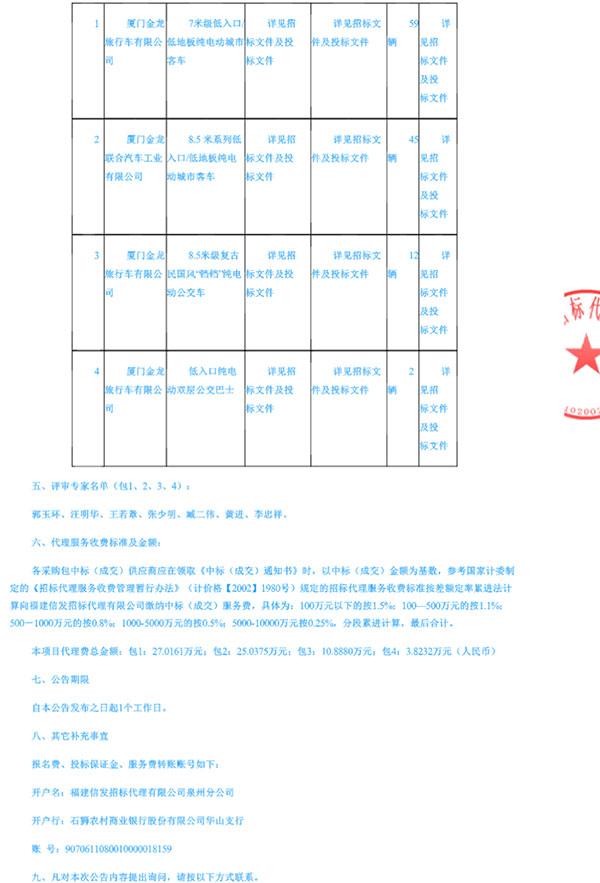 福建省晋江公交118辆新能源公交车采购项目结果公告(合同包1、2、3、4)