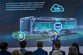 当地时间10月3日,宇通客车亮相2025年比利时世界客车博览会,展示多款高端纯电动巴士、新能源“车电同寿”技术及Link+车队管理系统等全生命周期解决方案【详细】